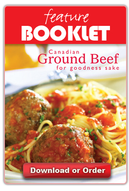 This booklet is the complete guide to cooking and serving Canadian ground beef, with information on ground beef goodness, using bulk packs, Ground Sirloin, Round and Chuck, Health Check qualified ground beef, safe food handling guidelines, 4 feature recipes and more.