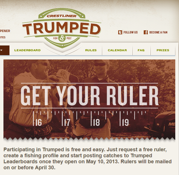 For a limited time you can request to receive a FREE Crestliner Trumped Fishing Ruler. Rulers will be mailed on or before April 30.