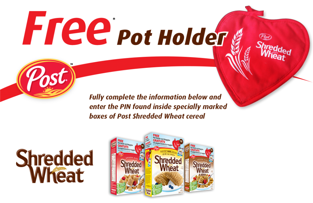 Purchase specially marked packages of Shredded Wheat and enter the PIN code found inside to claim your free Pot Holder plus receive a free copy of Canadian Living Magazine!