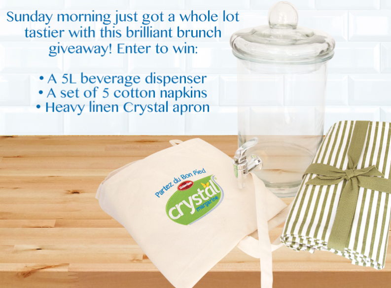Enter for your chance to win a Brunch Prize Pack including 5L beverage dispenser, set of 5 cotton napkins & heavy linen Crystal apron