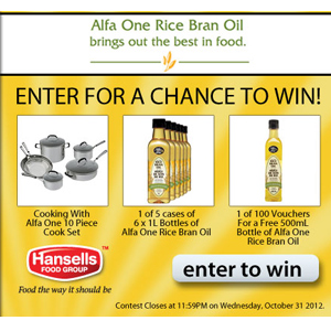 1 of 100 vouchers for FREE 500ml bottle of Alfa One Rice Bran Oil