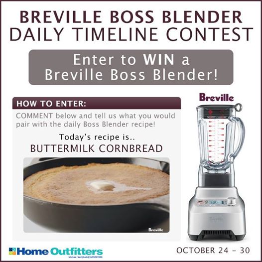 Watch for the daily Boss Blender recipe posts & comment on them to enter for your chance to win a Breville Boss Blender valued at $699.99.