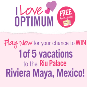 Shoppers Drug Mart has just launched their I Love Optimum Contest! Enter to win 1 of 5 Grand Prize trips to Mexico or 1 of 50 Instant Win Prizes! Contest closes Feb 18, 2013