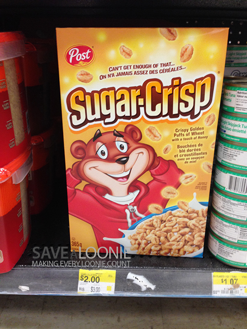Walmart has Post Sugar Crisp Cereal 365g on clearance for $2.00.