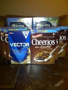Today was FREE CEREAL DAY!!! We have been waiting for this day for weeks!! We each got our coupon from websaver for the free Chocolate Cheerios and had accumulated 3 more through trades! Also hubby some how wound up with a coupon for a FREE Vector cereal from save.ca, so we saved that one to get all our free cereal in one day! We got 6 boxes of cereal today valued at $37.24 ABSOLUTELY FREE!! But I must add, not without a bit of hassle.