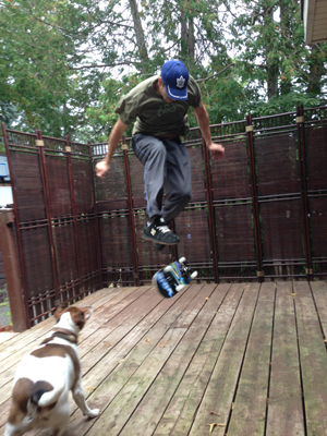 Anyways, we went to pick it up and it is awesome! Better than expected to be honest. Ryan used to skateboard on a sponsored team when he was a teenager so he had to give it his seal of approval! It was actually probably one of the funniest things I’ve seen watching him TRY to do tricks on the back deck LOL