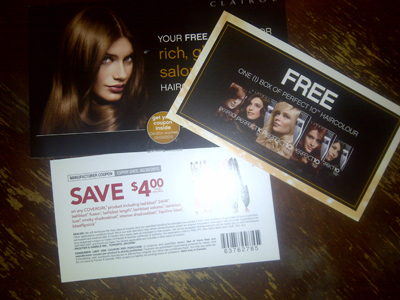 We also got our Clairol Perfect 10 FPCs (offer over)! I’m not going to need to buy hair dye for ages! The FPC also came with a bonus coupon for $4.00 off select Cover Girl products. Yay! Gotta love bonus coupons!
