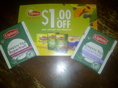 I also got my Lipton Green Tea Superfruit sample (offer over). This sample took a long time to come but I LOVE tea so it was worth it 🙂 They sent the sample I selected and another that they thought I would enjoy. It also came with a coupon for $1.00 off any Lipton Tea product.