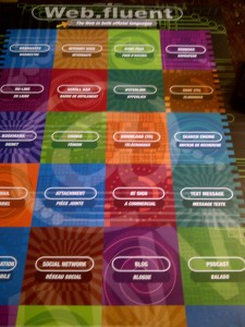 Our Web.Fluent poster from the Office of the Commisioner of Official Languages. This arrived early this morning before the other mail arrived and was left between our doors! It has basic terms related to the internet in both English and French. Its bright and useful and will make a nice addition to our office.