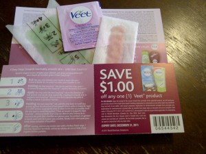 My Veet Wax Strip sample also FINALLY arrived! I had been waiting on this one so long I was beginning to doubt if I’d even ordered it! LOL This sample also came with a $1.00 off any Veet product coupon. (Offer over)