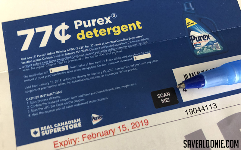 I got my Purex for 77 cents coupon from Save.ca and Real Canadian Superstore. This coupon was available for a limited time on January 14th.