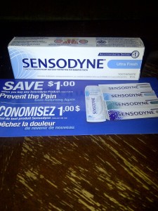 Our Sensodyne sample also finally showed up! I had been hearing/reading alot of people saying they had got them already and was beginning to wonder if yet another thing had gotten lost to the Canada Post strike. This will definately come in handy on the camping trip