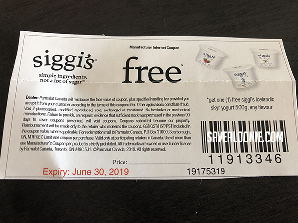The siggi’s Icelandic skyr Yogurt Free Product Coupon I requested from Save.ca (no longer available) also arrived this week. I haven’t seen this product in stores yet, but I will be keeping an eye out!