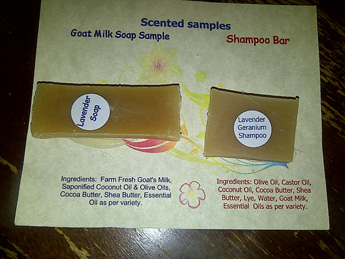 We received these samples from The Great Canadian Soap Company this week. I had long dismissed and forgotten about these samples. I had requested them in June! But they came, and they smell fantastic! We got a lavender soap sample and a lavender geranium shampoo bar sample. I’ve never seen a shampoo bar before! These samples are no longer available.