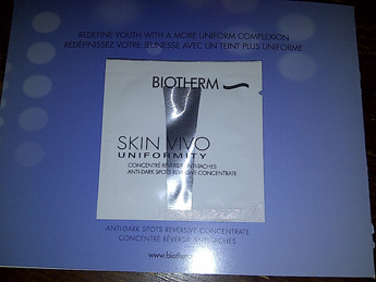 We received these samples of Biotherm Skin Vivo. This was from a Facebook giveaway (now over). We get this stuff for our moms to try out :)