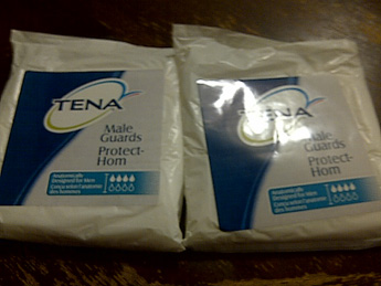 We also did receive this sample from Tena last week. These are 2 underwear guards for men. They will be going to a family member. You can still request your sample from Tena