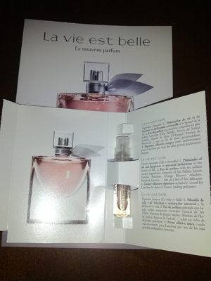 My sample of Lancome La Vie est Belle perfume arrived (over). I LOVE this perfume – it smells so good 🙂 The best part is it is not just a postcard sample but a full size vial 🙂