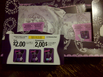 Yesterday (Sept 20), my Poise Hourglass pads arrived! It came with 2 pads, one maximum & one moderate absorbancy. There is also a coupon for $2.00 off with the sample. This coupon expires June 30, 2012.