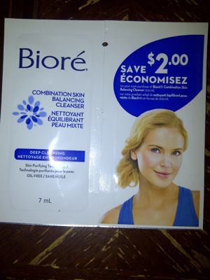 I got my sample from Biore from the Ditch Your Dirt promotion. This 7ml sample contains Combination Skin Balancing Cleanser as well as a coupon for $2.00 off! You can still request your sample here.