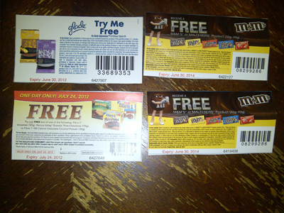 Another week with some more fantastic Free Product Coupons! We received 2 more FPCs from the M&M’s Instant Giveaway as well as a Glade Expressions FPC and a Nature Valley/Fibre 1 FPC from Save.ca!