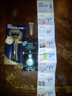 This is what we received in our P&G BrandSampler package this time around. It came with a Gillette Fusion ProGlide Gold Razor, Olay Regenerist sample, Downy Unstoppables Sample and $10 in Febreze coupons. The Downy and the Febreze coupons were unexpected so a nice surprise. I was really hoping to get one of those Febreze Car Vent clips though!