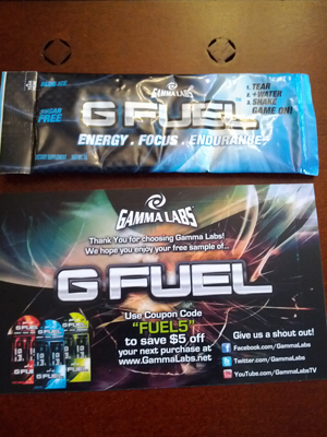 We also finally received our sample of Gamma Labs G Fuel Stick. This sample also came with a coupon code for $5 off a purchase of their product. We requested this sample way back in early July!