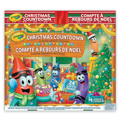Celebrate the season with 24 daily activities to keep you in the holiday spirit! Includes: doodle scents markers, 1 Twistables slick Stix, 4 glitter crayons, 4 metallic crayons, 6 paint pots, 1 paint brush, 59 ml model magic, 2 washable window markers, 1 pip squeaks marker, 20 Goggly eyes, 1 glitter glue stick, 1 tip sharpener, 19 paper sheets, 1 envelope, 3 sticker sheets, 1 instruction sheet, 3 Anchros, 3 ribbon pieces,1 glitter glue tube.