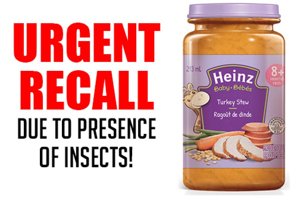 Kraft Heinz Canada is recalling Heinz brand Turkey Stew 8+ Months baby food from the market due to the presence of insects! The affected products include: