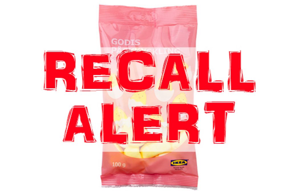 | Ikea | Marshmallow candy (GODIS PÃ…SKKYCKLING) | 100Â g | All codes sold in 2018 | 1.602.603.11.0002 |