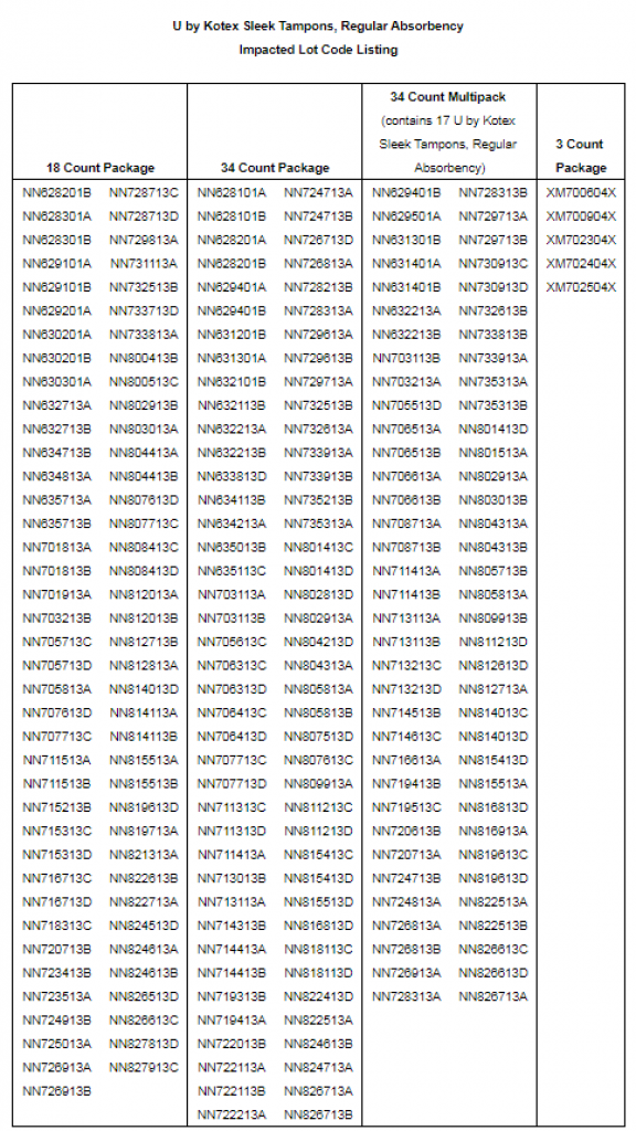 You can also use the Lot Code Checker on the U by Kotex website to see if products you have are included.