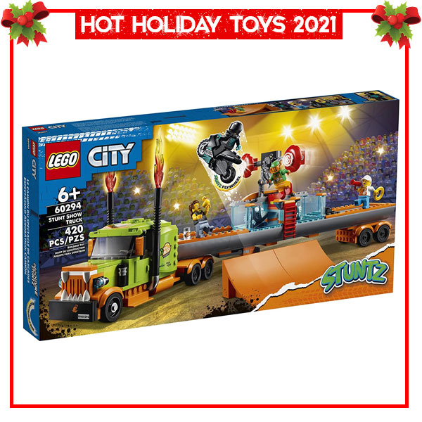 Set the stage for an exciting stunt spectacular with LEGO City Stunt Show Truck. This building kit includes everything you need to build a huge truck with room for the launch and landing ramps, functioning dunk tank, flywheel-powered stunt bike, 4 mini-figures with accessories and more.