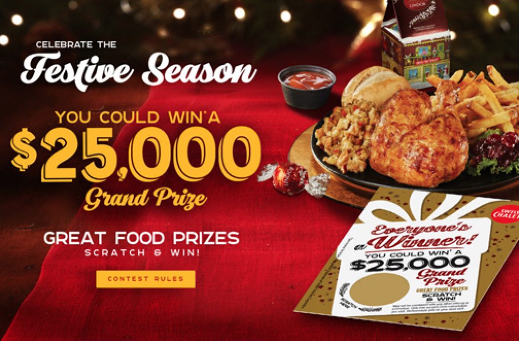 When you purchase each Festive Special, you will receive a Scratch & Win card. Scratch to reveal if you’ve won the Grand Prize of $25,000 or millions of food prizes including:
