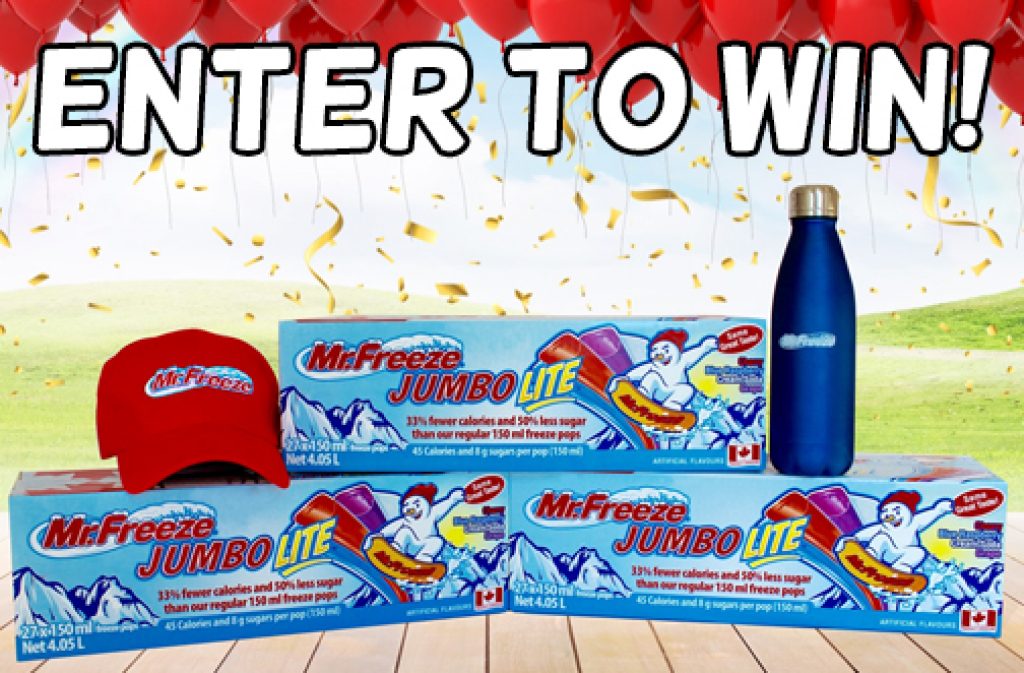 Enter for your chance to win a Kisko Mr. Freeze Lite Prize Pack including 3 boxes of Mr. Freeze Jumbo Lite Freezies, 1 Mr. Freeze Water Bottle and 1 Mr. Freeze Cap.
