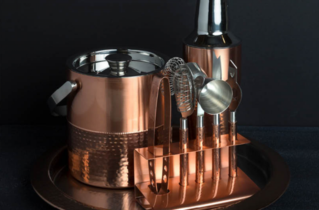 The Prize Pack consists of a stunning 9-piece bar set including an ice bucket, shaker, platter, and more.