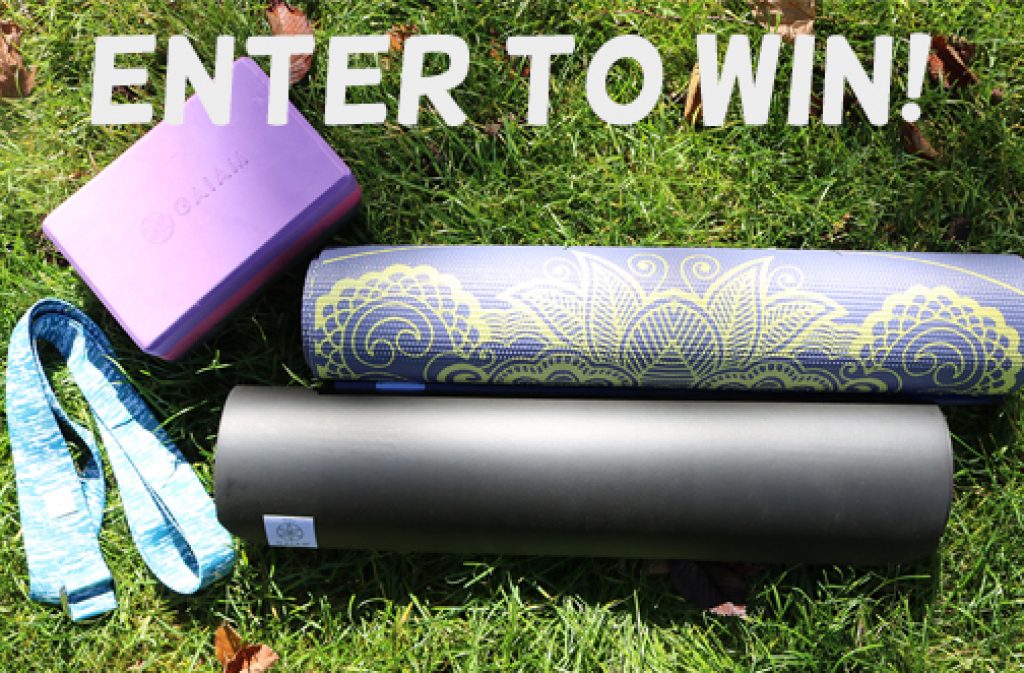 Prize pack includes one (1) Gaiam 6mm reversible printed yoga mat, one (1) Gaiam studio select dry grip yoga mat, one (1) Gaiam studio select so-slip yoga towel, one (1) Gaiam tri-colour yoga block, one (1) Gaiam studio 8ft premium yoga strap and two (2) pairs of Gaiam studio select yoga-barre socks, valued at approximately $229.93