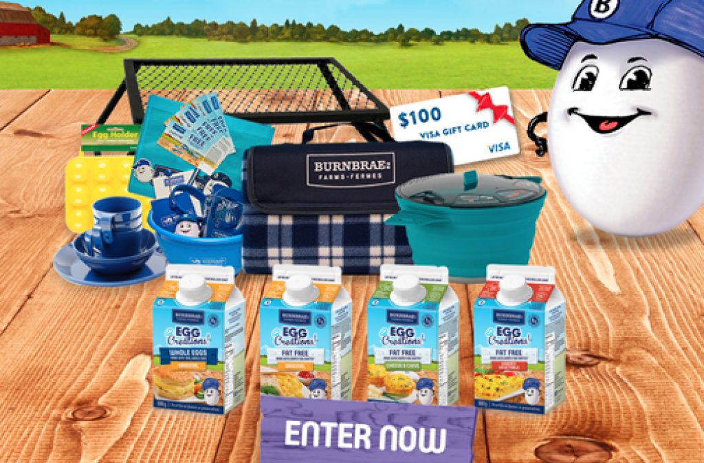 And Egg Creations is giving you the chance to enter for your chance to win 1 of 5 Outdoor Cooking Prize Packs! Each prize pack includes a $100 Visa Gift Card, Deluxe Camp Grill, Gift Basket with Burnbrae Farms merchandise and product coupons and MORE! A total value of $350!
