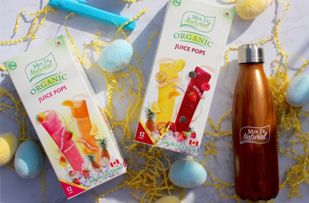 Enter for your chance to win a Mrs. J’s Organic Prize Pack including 2 boxes of Mrs. J’s All Natural Organic Juice Pops, a Mrs. J’s Stainless Steel Water Bottle and a set of reusable straws!