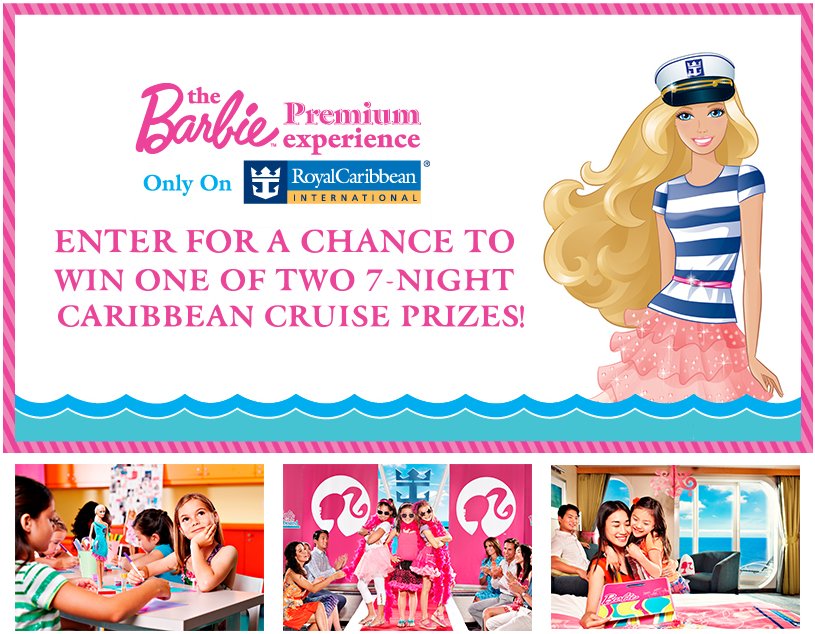 Enter for your chance to win 1 of 2 Royal Caribbean Cruise Prize Packs complete with the exclusive Barbie Premium Package for your little girl aged 4-11.