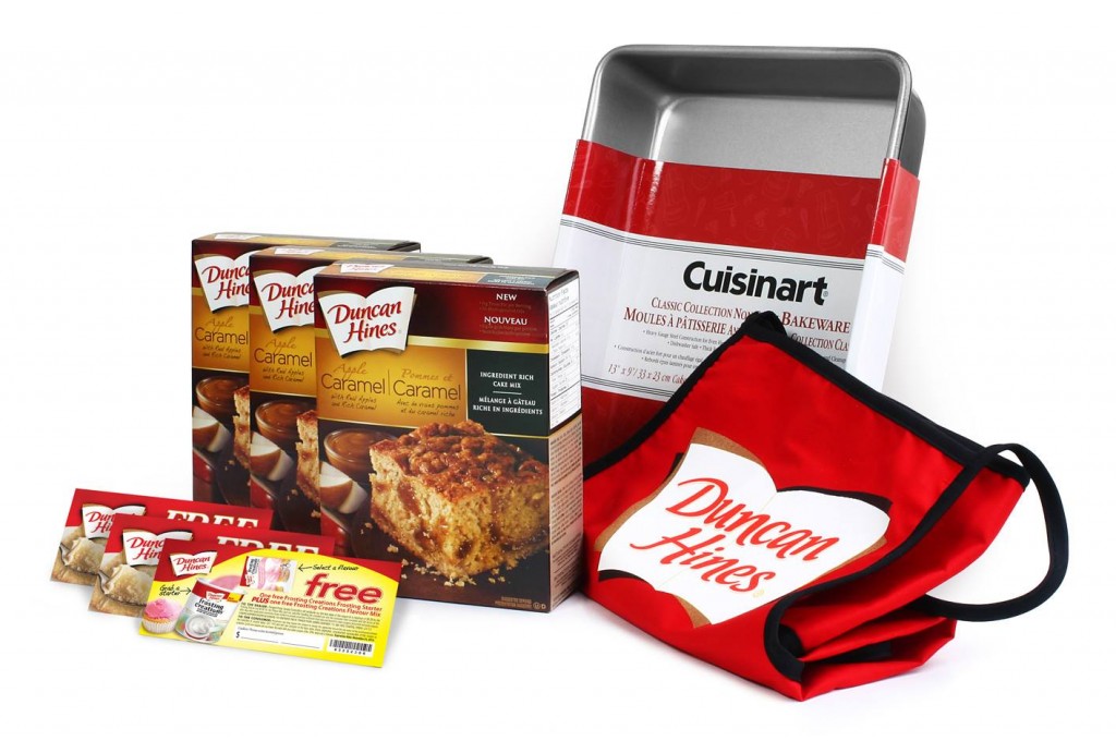 Each pack includes a Duncan Hines Cake Mix, Cuisinart Baking Pan, apron & Coupons!