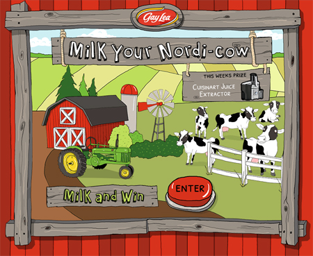 Play the Noridca Milk A Cow Game / Contest for your chance to win 1 of 8 Weekly Prizes from Noridca!