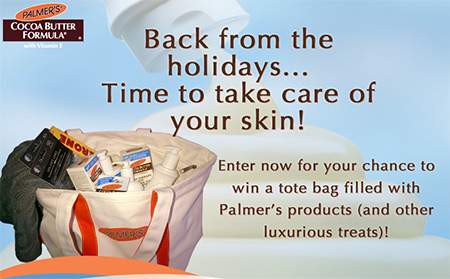 Enter for your chance to win a tote filled with Palmer’s products. One time entry.