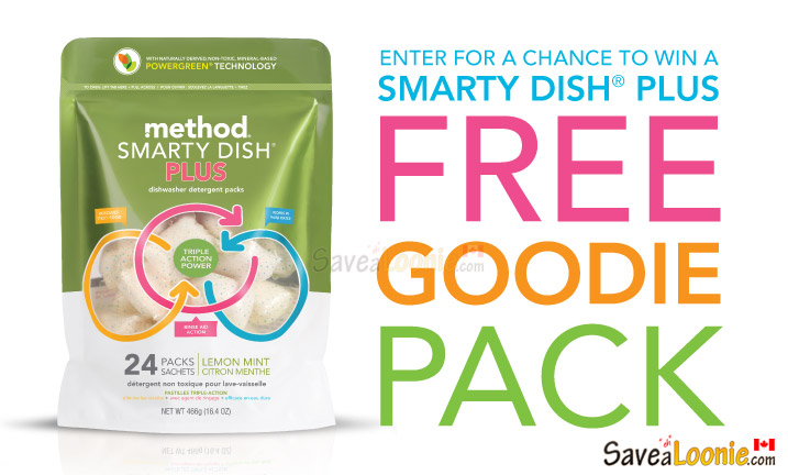Enter for your chance to win 1 of 160 FREE method Smarty Dish Plus dishwasher tablets valued at $7.49 (24 count). Winners will also receive a $1.00 coupon.