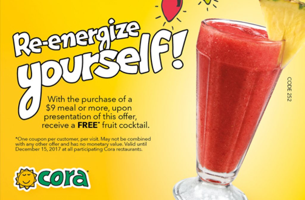 Get a FREE Fruit Cocktail with the purchase of a $9 meal or more.