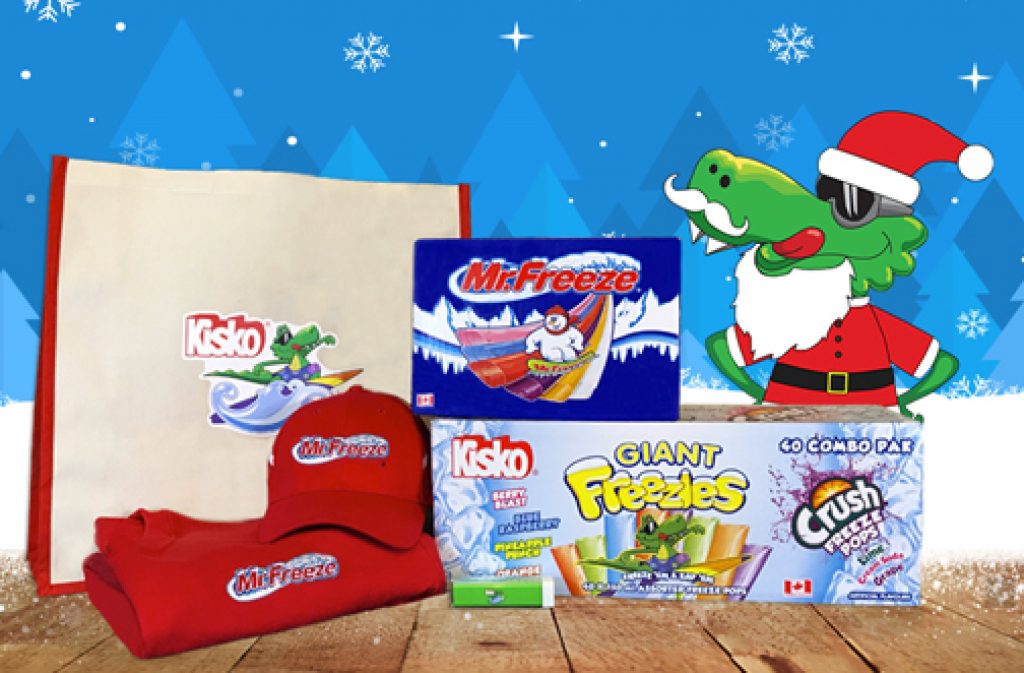 Prize Pack includes 1 Kisko/Crush Giant Combo Pak (40 Freezies), 1 Mr. Freeze Freezer Box (80 Freezies), 1 Kisko/Mr. Freeze Shopping Bag, 1 Mr. Freeze Sweatshirt, 1 Mr. Freeze Smart Wallet & 1 Kisko Flash Power Bank.