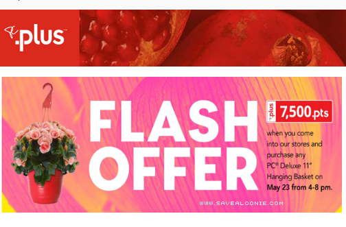 Check your email to see if you’ve received a bonus offer for 7500 PC Plus Points when you purchase any PC Deluxe 11″ Hanging Basket. That’s $7.50 in points!