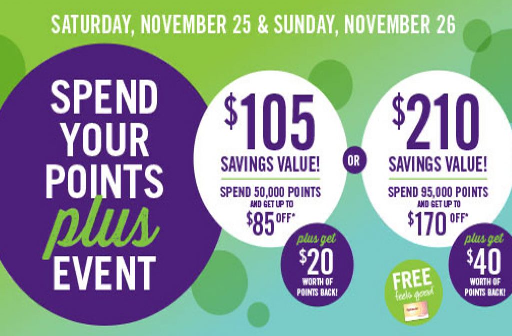 Spend 50,000 Points and get up to $85 off + get $20 worth of Points Back