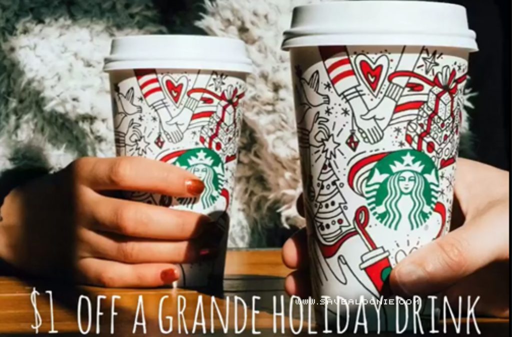 For a limited time, enjoy $1.00 off any Grand Holiday Beverage at Starbucks.