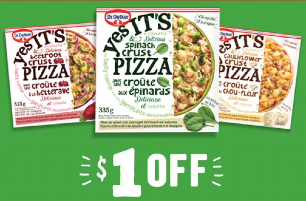 Claim your coupon to save $1.00 off the purchase of any Dr. Oetker Yes, It’s Pizza, any variety (315g-345g)