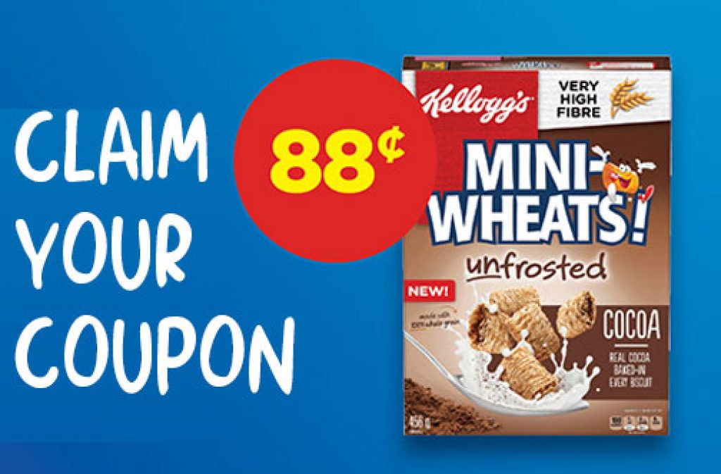 Right now, you can claim a coupon to pay just 88¢ for a box of Kellogg’s Mini-Wheats Unfrosted Cocoa Cereal.