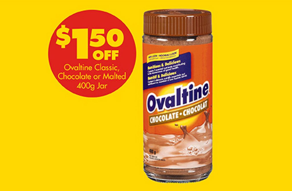 Save $1.50 off the purchase of any Ovaltine 400g jar (Classic, Chocolate, Malted)